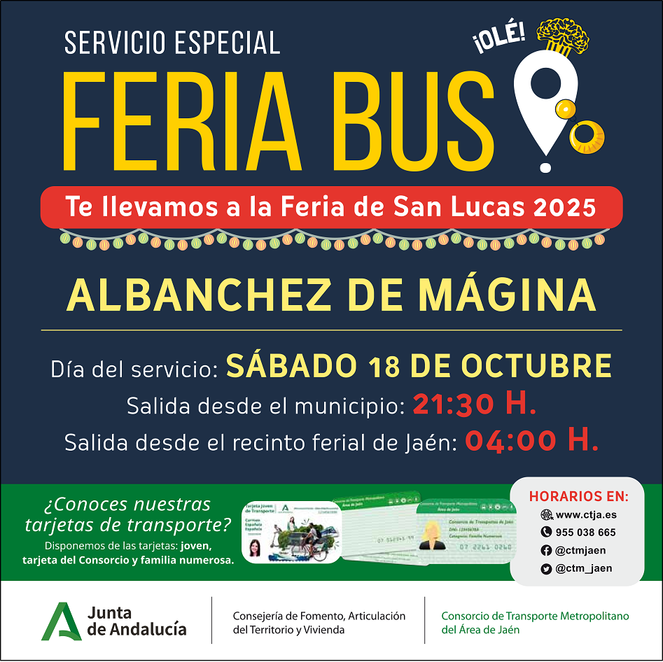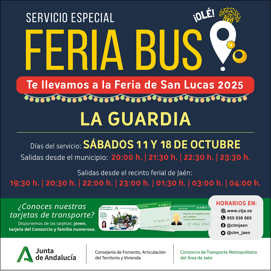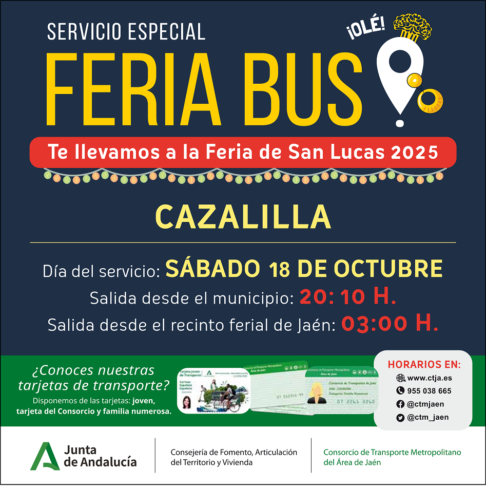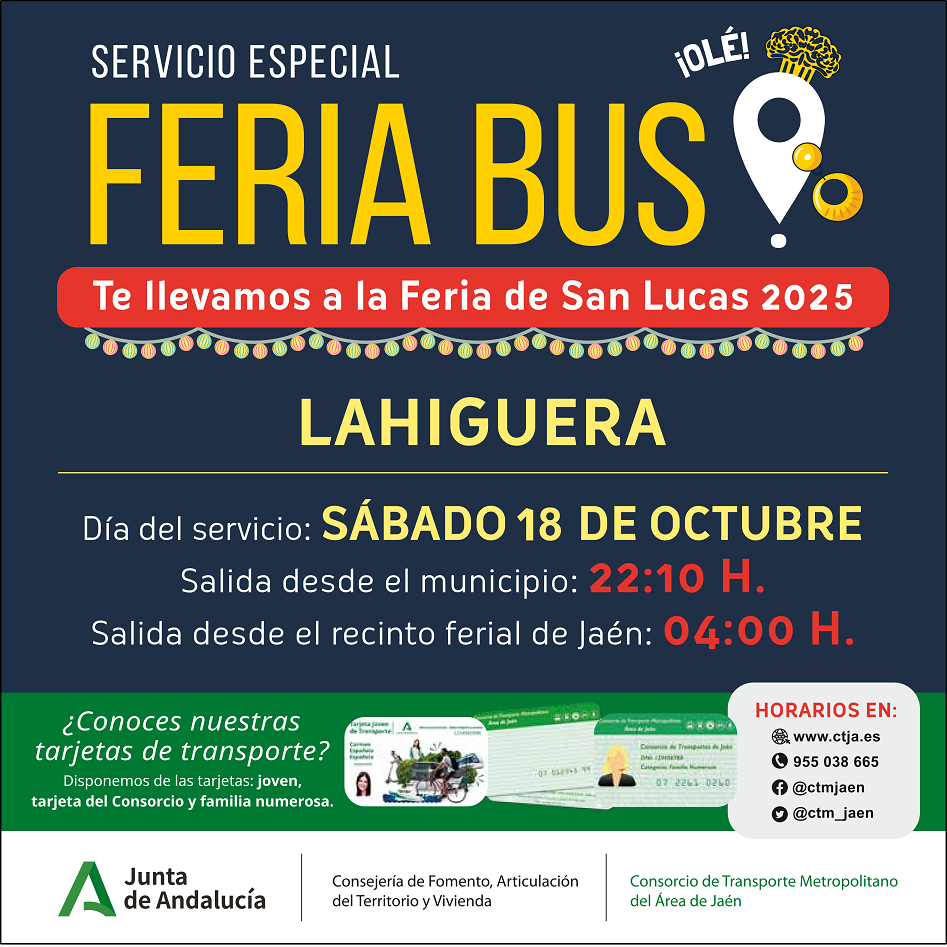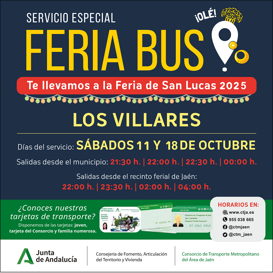 Consulta todos los horarios y frecuencia que, desde tu localidad, te desplazarán a la Feria de San Lucas 2025
